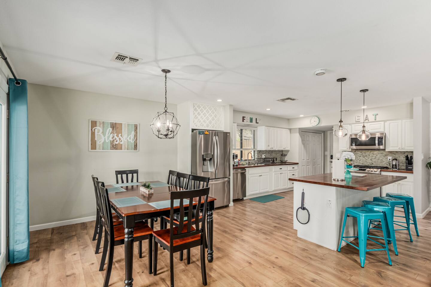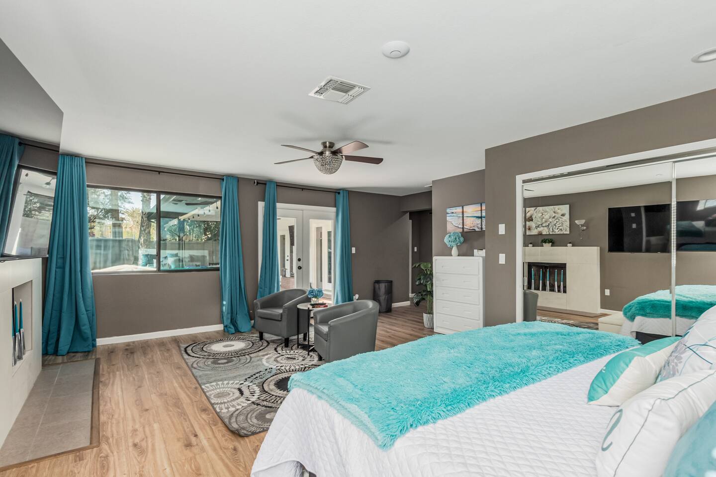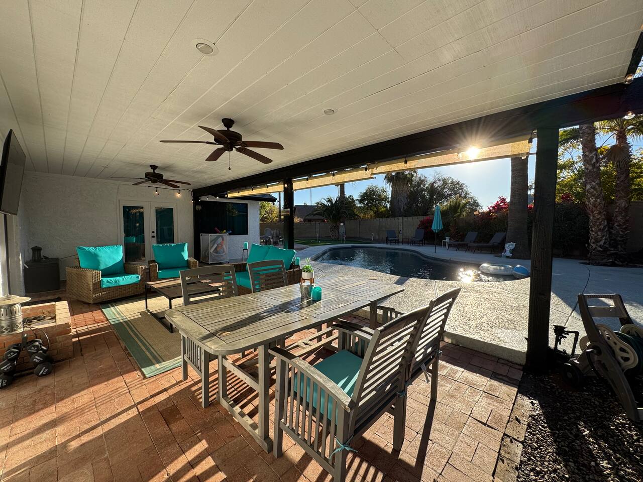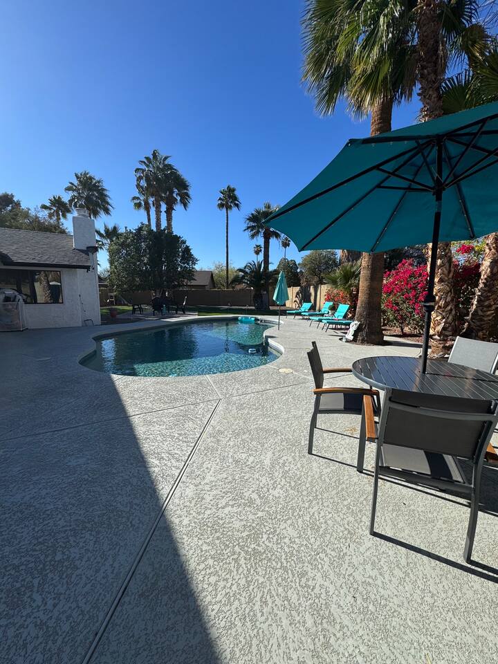 The 4-bedroom house (private casita w/full bath, acts as 5th bedroom which requires an additional fee, if available) is the perfect getaway for you, your family, and friends. The private casita has its own coded entrance and may be booked by other guests who have no access to the main house or the backyard amenities.
