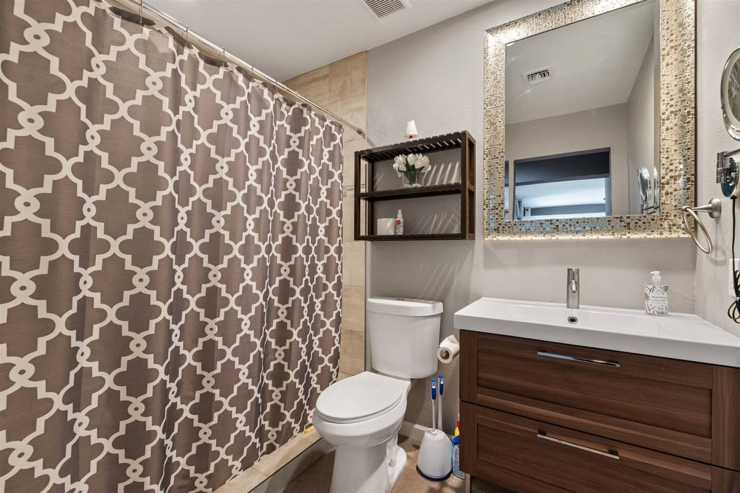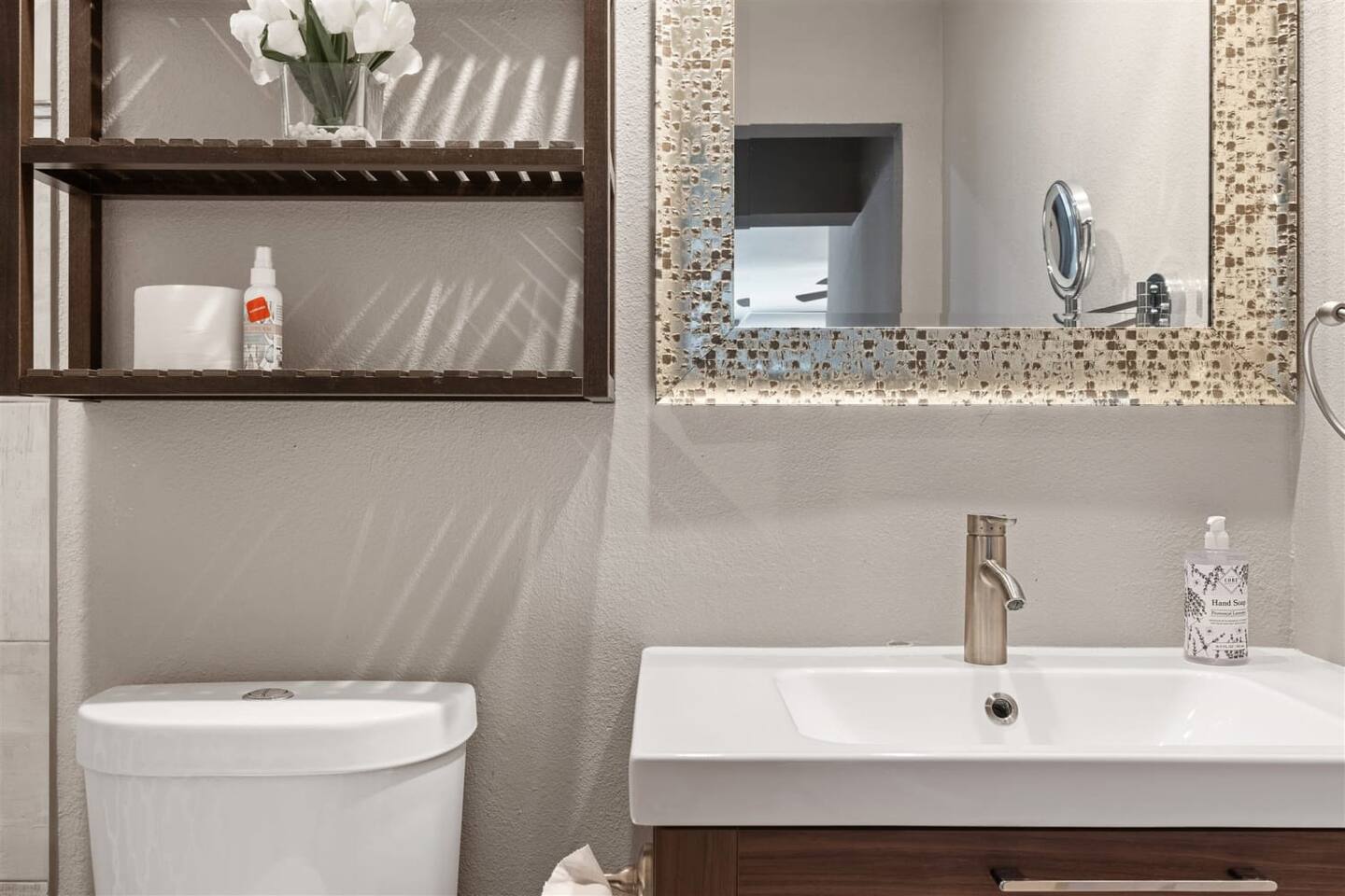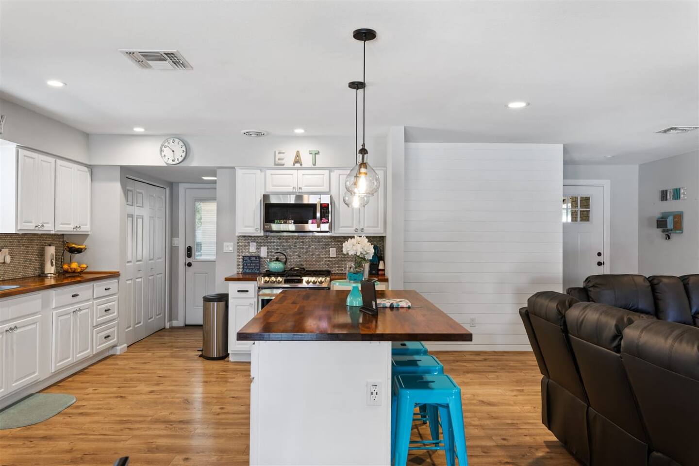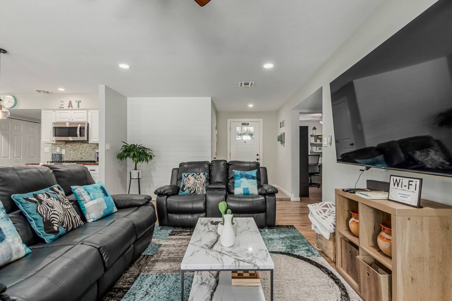 It's a driving city, so you'll want a car or to use ride share services like Lyft or Uber when you visit. If you are flying in, it's a 22 minutes' drive (either by rental car or Uber) from the airport to the house.